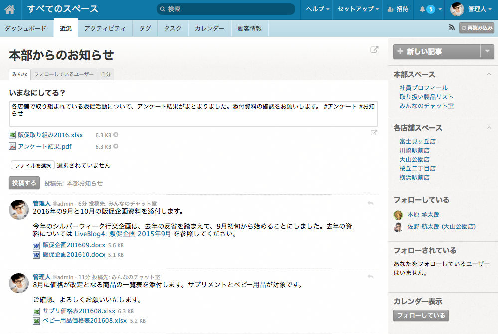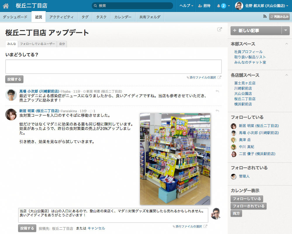 Dispatch activity policies and sales materials etc. from HQ to each store. Since footprints are attached, it is certain to see whether or not to read. Also, feedback from the site can be linked to the next activity.