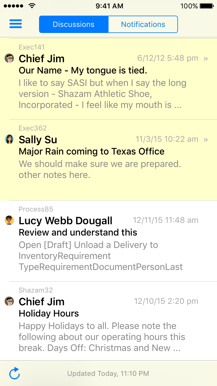 The free TeamPage app lets you review TeamPage discussions and notifications, tracks what you have read, and lets you add items to your worklist and reply via email. It also supports offline reading and replying to downloaded content. It's a handy way to keep up with activity in TeamPage using your iPhone or iPad when you're away from your desk. See TeamPage App for iPhone and iPad and Chris Nuzum's blog post for details and examples. You can download the free TeamPage App from Apple's iOS App Store.