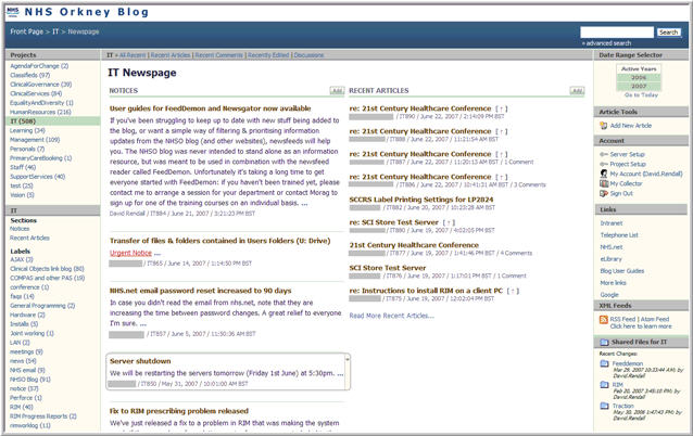 Read more in David Rendall's A Web That Works blog, his commentary on Nudging Users Towards Consistency, and a co-authored Intranet Journal Story titled Traction, Newsgator Weave a Web that Works | NHS Orkney (see 30 July 2007 | IntranetJournal - Traction, Newsgator Weave a Web that Works | NHS Orkney and 30 July 2007 | IntranetJournal - Traction, Newsgator Weave a Web that Works | NHS OrkneyBlog461 ).30 July 2007 | IntranetJournal - Traction, Newsgator Weave a Web that Works | NHS Orkney